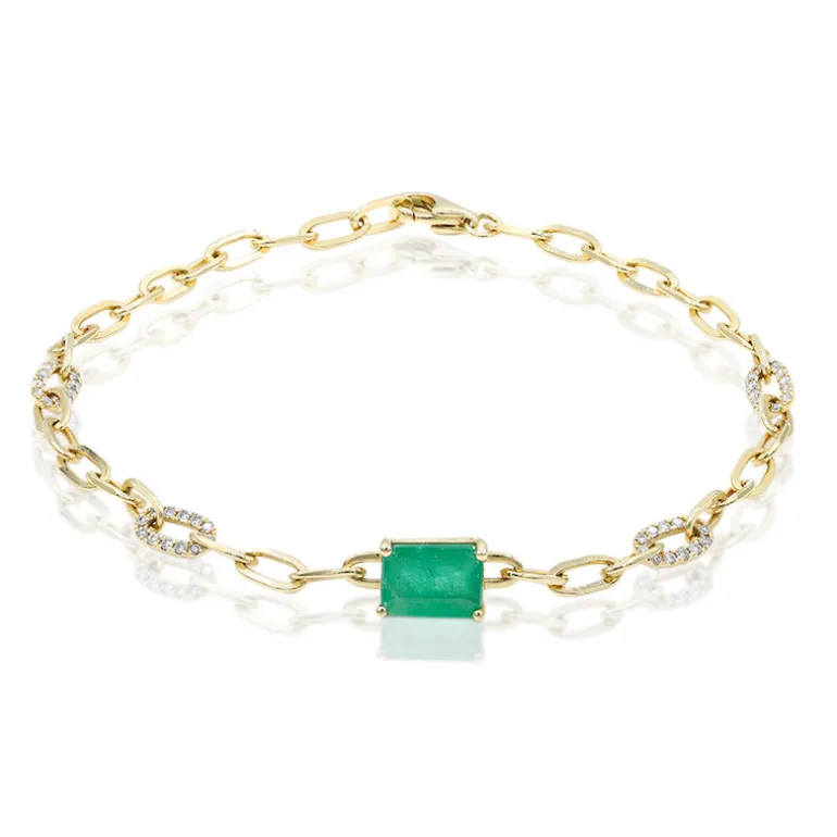 Dieses exquisite Armband zeigt einen atemberaubenden sambischen Smaragd in AAA-Qualität, der elegant in einer achteckigen Form geschliffen ist. Er ist in 14-karätigem Gelbgold gefasst und wird von 48 runden SI2-Brillanten ergänzt, die ihm einen brillanten Schimmer verleihen. Mit einem Gesamtgewicht von 1,16 Karat misst dieses raffinierte Schmuckstück 18,5 cm und eignet sich sowohl für das tägliche Tragen als auch für besondere Anlässe. Kombinieren Sie es mit Abendgarderobe für einen Hauch von Eleganz.