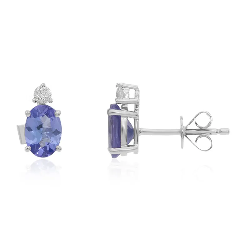 Genießen Sie das Strahlen dieser AAA-Tansanit-Ohrringe mit einem Paar oval geschliffener Steine von insgesamt 1,23 Karat aus dem üppigen Land Tansania. Jeder Ohrring wird von einem funkelnden runden Brillanten von 0,08 Karat gekrönt, der einen Hauch von Luxus verleiht. Die Ohrringe aus 10-karätigem Weißgold mit einem Gesamtgewicht von ca. 0,86 Gramm sind ein Ausdruck von Eleganz und Raffinesse. Sie eignen sich perfekt für besondere Anlässe oder als glamouröse Ergänzung für den Alltag und verleihen jedem Ensemble einen majestätischen Farbklecks.