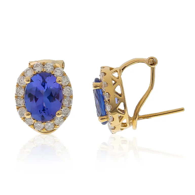 Entdecken Sie die Faszination dieser atemberaubenden Ohrringe mit einem brillanten AAA-Tansanit von 3,702 Karat im Ovalschliff, der von strahlenden SI2-Diamanten umgeben ist. Die sorgfältig aus 14-karätigem Gelbgold gefertigten Ohrringe ziehen mit ihrem leuchtenden Blauton die Blicke auf sich, während die funkelnden Diamanten mit einem Gesamtgewicht von 0,959 Karat einen strahlenden Kontrast bilden. Diese luxuriösen Ohrringe verleihen jedem Ensemble einen Hauch von Raffinesse und eignen sich ideal für besondere Anlässe oder zur Aufwertung Ihres Alltagsstils.