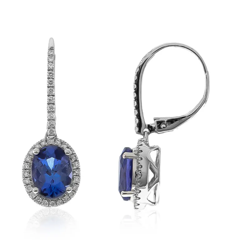 Entdecken Sie die Eleganz dieser exquisiten AAA-Tansanit-Ohrringe, die in 14 Karat Weißgold gefasst sind. Die leuchtenden 3,24 Karat Tansanite im Ovalschliff, die aus Tansania stammen, werden von 70 schimmernden SI2-Diamanten wunderbar ergänzt. Diese Ohrringe eignen sich perfekt für elegante Abende oder zur Aufwertung Ihres Alltagsstils und verleihen jedem Outfit einen Hauch von Klasse und Funkeln.