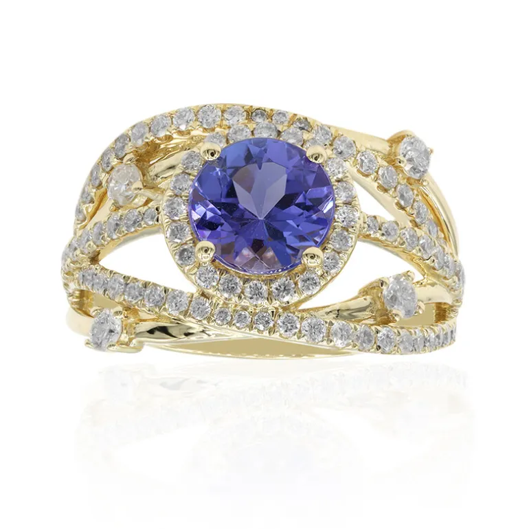 Wir präsentieren einen atemberaubenden AAA-Tansanit-Goldring, der von CIRARI in exquisiter Handarbeit gefertigt wurde. Er zeigt einen runden Tansanit von 1,49 Karat aus Tansania, der von einem Heiligenschein aus glitzernden Diamanten von insgesamt 2,357 Karat umgeben ist. Dieses in 585er Gelbgold gefasste Meisterwerk ist ideal für elegante Abende oder besondere Anlässe. Kombinieren Sie diesen Ring mit einem eleganten Outfit, um ihn zum ultimativen Statement zu machen.