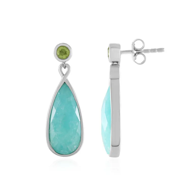 Entdecken Sie die Faszination dieser eleganten Amazonit-Ohrringe aus Sterlingsilber mit wunderschönen Tropfen aus peruanischem Amazonit und Peridot im Rundschliff aus China. Die ruhigen Blautöne des Amazonits harmonieren wunderbar mit dem leuchtenden Grün des Peridots und bilden eine auffallende Kombination. Diese Ohrringe sind ein vielseitiges Must-have für jede Schmucksammlung und eignen sich perfekt, um legere Outfits aufzuwerten oder der Abendgarderobe einen Hauch von Eleganz zu verleihen.