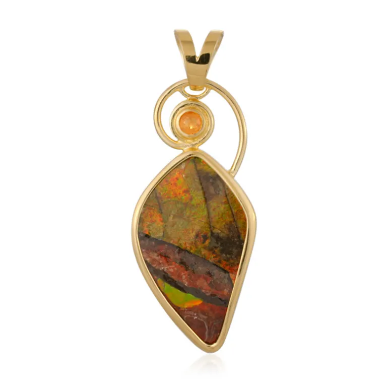 Goldanhänger mit kanadischem Ammolith und Mandaringranat, 23ct