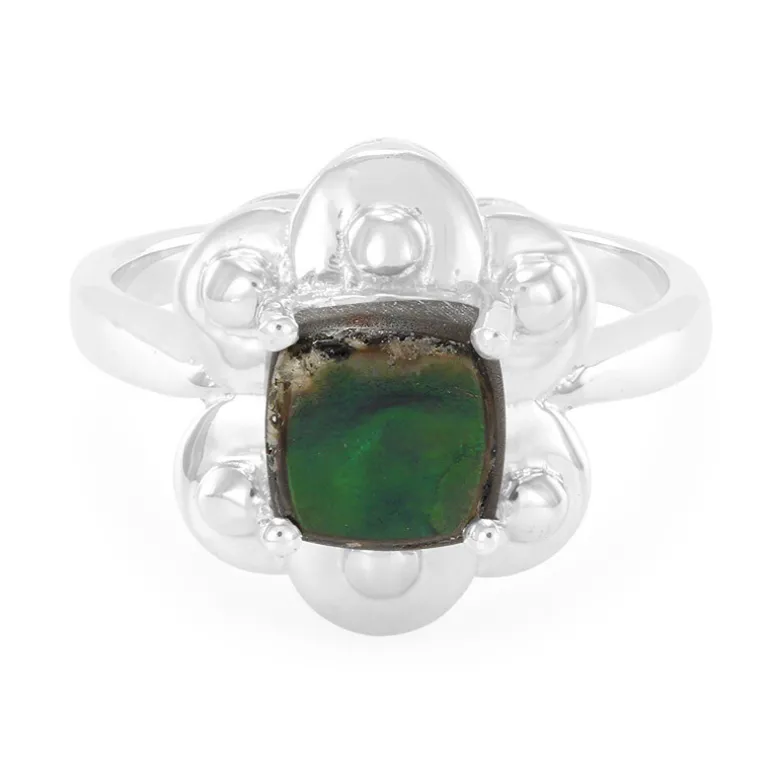 Entdecken Sie die bezaubernde Anziehungskraft unseres kanadischen Ammolith-Rings mit einem 1,91-karätigen Kissen-Cabochon-Edelstein, der durch sein schillerndes Farbspiel besticht. Eingefasst in glänzendes 925er Sterling Silber, verbindet dieser Ring historischen Charme mit moderner Eleganz. Mit einer perfekten Größe von 7 mm ist die antike Kissenform des Ammolithen eine Anspielung auf die Vintage-Ästhetik, während die moderne Fassung eine vielseitige Passform für jeden Anlass gewährleistet. Lassen Sie dieses Schmuckstück zu Ihrem Lieblingsaccessoire werden, sowohl für zwanglose Ausflüge als auch für anspruchsvolle Anlässe.