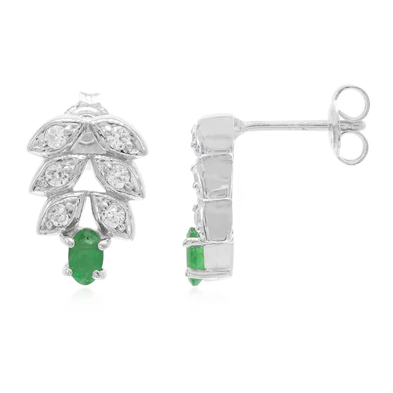 Entdecken Sie die lebendige Anziehungskraft dieser Ohrringe aus Sterlingsilber mit brasilianischen Smaragden im Ovalschliff von 0,34 Karat. Akzentuiert durch schimmernde kambodschanische Zirkone von insgesamt 0,61 Karat, zeigt jeder Ohrring ein außergewöhnliches Funkeln. Das 925er Sterlingsilber ist kunstvoll plattiert und wiegt etwa 3,24 g. Diese Ohrringe sind ideal, um Ihrem Outfit einen farbigen Akzent zu verleihen, und eignen sich sowohl für einen legeren Brunch als auch für einen formellen Abend.