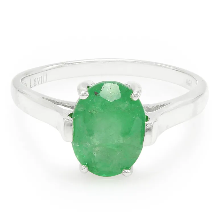 Entdecken Sie die lebendige Anziehungskraft dieses platinierten Rings aus 925er Sterlingsilber, der einen glänzenden 1,45-karätigen Bahia-Smaragd aus Brasilien präsentiert. Der Edelstein ist in einer eleganten ovalen Form geschliffen und besticht durch seinen lebhaften grünen Farbton, der die Essenz exotischer Raffinesse einfängt. Dieser Ring eignet sich perfekt, um Ihrer Alltagskleidung einen farbigen Akzent zu verleihen oder ein abendliches Ensemble zu ergänzen, und ist eine vielseitige Ergänzung für jede Schmucksammlung. Er eignet sich sowohl für Edelsteinliebhaber als auch für Neueinsteiger in die Welt des feinen Schmucks und verspricht, über Jahre hinweg ein begehrtes Schmuckstück zu sein.