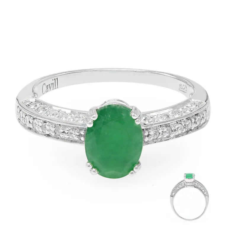 Entdecken Sie die Eleganz dieses Rings mit dem Bahia-Smaragd, der einen lebhaften Edelstein von 1,08 Karat im Ovalschliff aus Brasilien präsentiert. Der Ring ist aus platiniertem 925er Sterlingsilber gefertigt und mit 40 kambodschanischen Zirkonen verziert. Dieser Ring, der sich sowohl für den Alltag als auch für besondere Anlässe eignet, strahlt Raffinesse und Anmut aus und ist damit eine exquisite Ergänzung für jede Schmucksammlung.