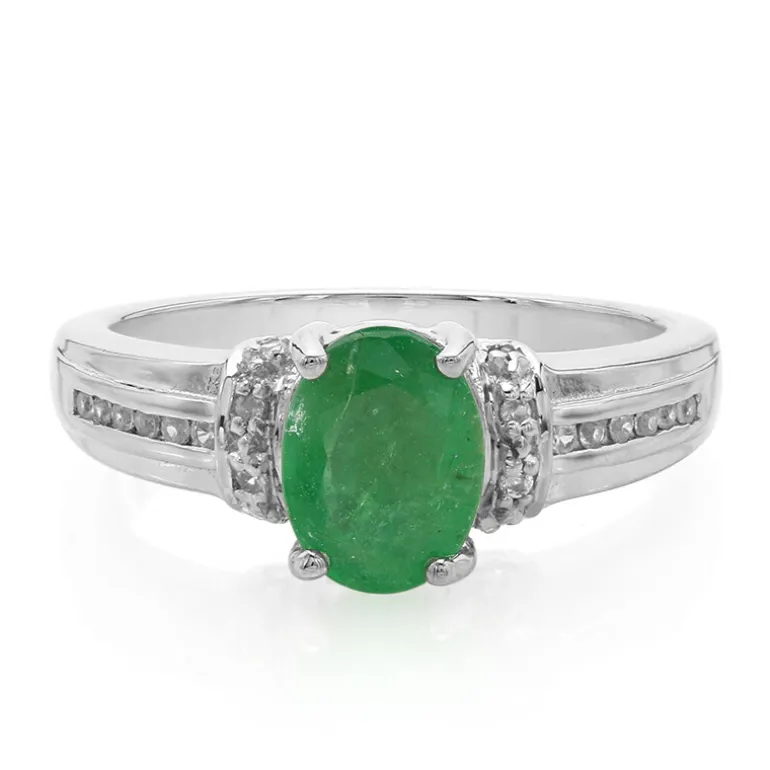 Entdecken Sie die Eleganz des Rings Bahia Emerald Plated Silver mit einem atemberaubenden Smaragd von 0,86 Karat im Ovalschliff aus Brasilien. 20 runde Zirkonsteine aus Kambodscha verleihen diesem Ring eine strahlende Brillanz. Er ist aus 925er Sterlingsilber mit einer eleganten Platinbeschichtung gefertigt und eignet sich perfekt, um jedem Abendoutfit einen Hauch von Raffinesse zu verleihen. Ideal für besondere Anlässe oder elegante Alltagskleidung.