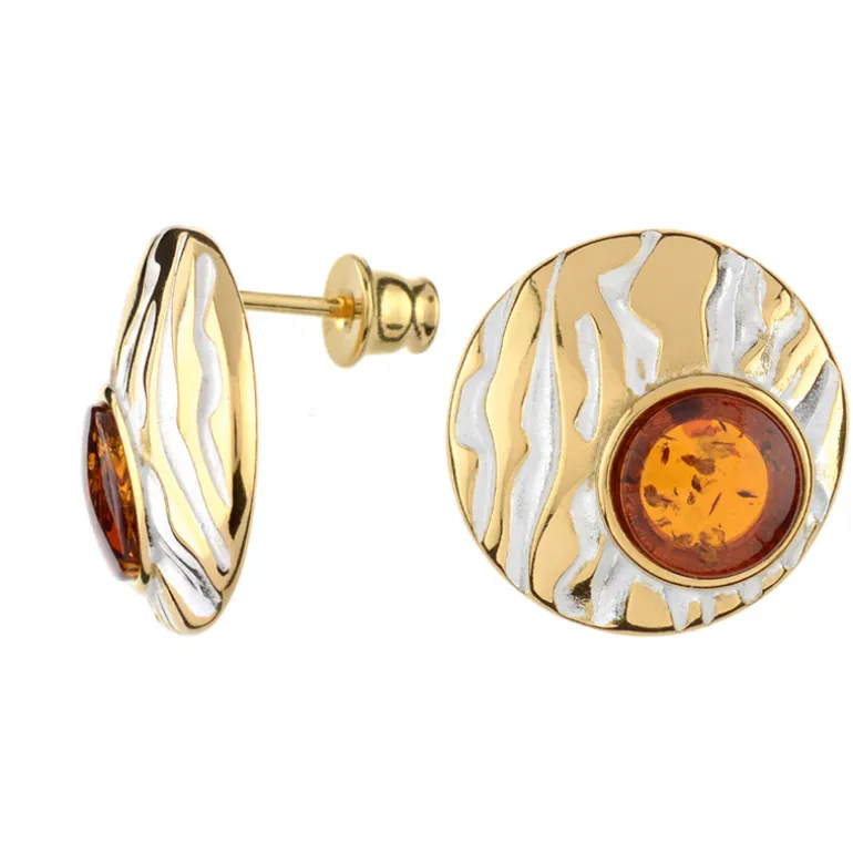 Schicke Cognac-Bernstein-Ohrringe aus vergoldetem Silber