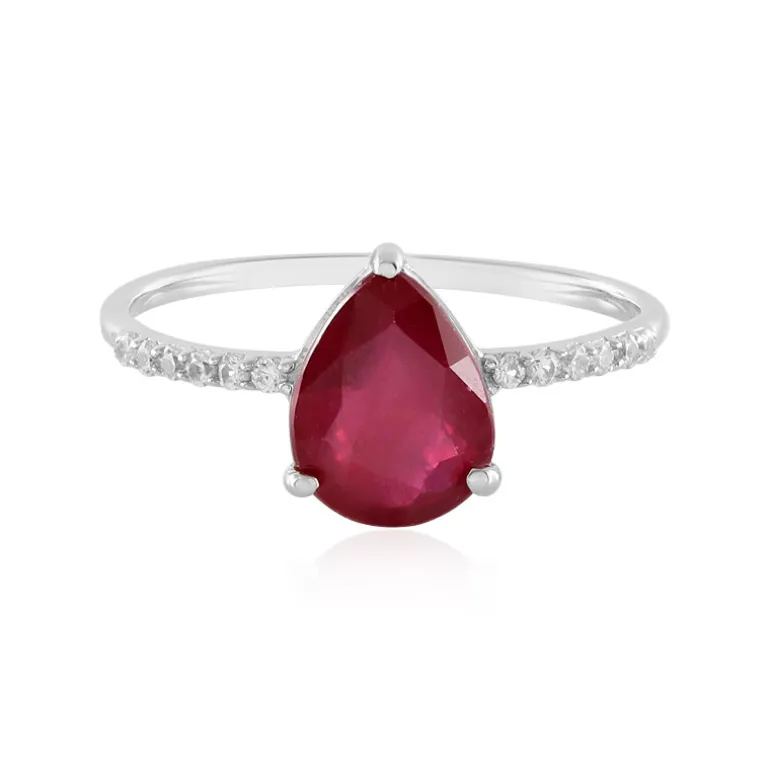 Entdecken Sie die Anziehungskraft dieses bezaubernden Rings mit dem Bemainty-Rubin aus Madagaskar, dessen Herzstück ein atemberaubender Rubin von 1,974 Karat im Tropfenschliff ist. Umgeben von funkelnden Zirkon-Akzenten aus Kambodscha mit einem Gesamtgewicht von 0,16 Karat ist dieses Schmuckstück in platiniertem 925er Sterlingsilber gefasst. Der leuchtend rote Edelstein wird von einem modernen und schmalen Band umschlossen, das ihn zu einer zeitlosen Ergänzung für jede Kollektion macht. Dieser Ring eignet sich perfekt, um sowohl der Freizeit- als auch der Abendgarderobe einen Hauch von Raffinesse zu verleihen und wird bei jeder Veranstaltung für Gesprächsstoff sorgen.