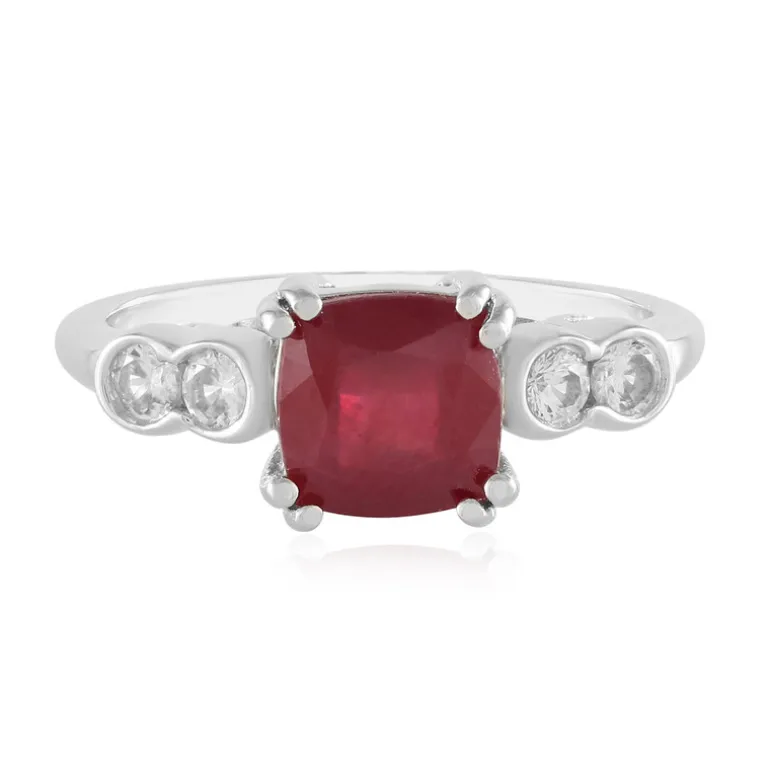 Entdecken Sie die Eleganz dieses auffälligen Rings mit 2,447 Karat, der einen bezaubernden Bemainty-Rubin aus Madagaskar enthält, der fachmännisch im antiken Kissenschliff geschliffen wurde. Akzentuiert durch vier schillernde kambodschanische Zirkone, ist dieses Stück in glänzendes platiniertes 925er Sterlingsilber gefasst. Dieser Ring eignet sich perfekt für die Abendgarderobe oder besondere Anlässe und verleiht jedem Outfit einen Hauch von Raffinesse.