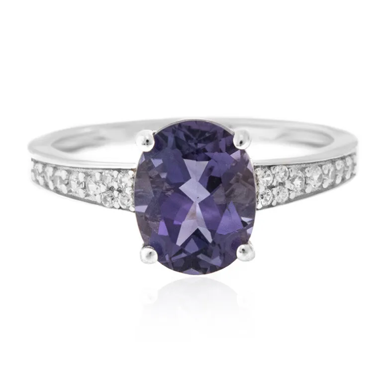 Entdecken Sie die Anziehungskraft dieses Rings aus Sterlingsilber, der mit einem fesselnden Blueberry-Quarz im Ovalschliff von 1,494 Karat aus Brasilien besetzt ist. Umgeben von funkelnden Zirkon-Akzenten aus Kambodscha, bietet dieser Ring ein Gesamtkaratgewicht von 1,653 ct. Der tiefviolette Farbton des brasilianischen Edelsteins wird durch den Glanz des 925er Sterlingsilbers ausgeglichen und wiegt ca. 2,25 g. Dieses raffinierte und vielseitige Schmuckstück geht nahtlos von Tageskleidung in elegante Abendgarderobe über und ist somit ein ideales Accessoire für jeden Anlass.