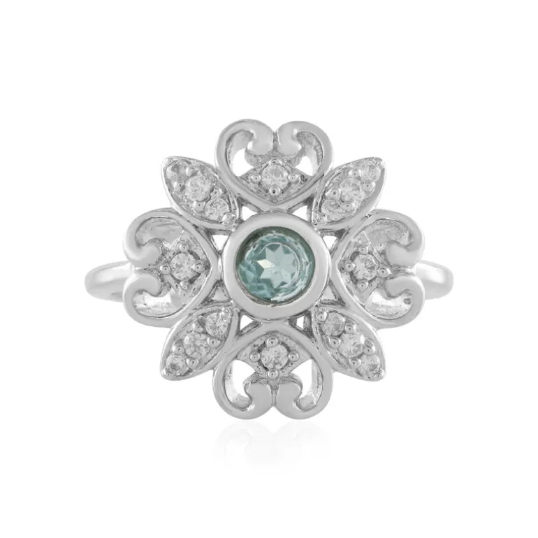 Entdecken Sie die Anziehungskraft dieses exquisiten blauen Apatitrings mit einem 0,329 Karat großen Edelstein im Rundschliff aus Brasilien. Der Ring aus platiniertem 925er Sterlingsilber mit funkelnden Zirkon-Akzenten aus Kambodscha wiegt ca. 3,9 g. Er eignet sich perfekt, um jedem Outfit Eleganz zu verleihen und ist ideal für Abendveranstaltungen oder formelle Anlässe und passt sowohl zu klassischen als auch zu modernen Stilen.