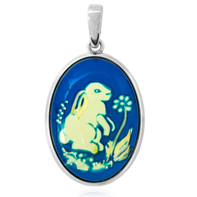 Whimsical Blue Amber Bunny Silber-Anhänger, Polen 10ct
