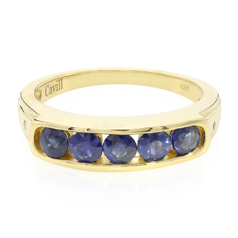 Dieser exquisite Ring zeigt die zeitlose Schönheit von Myanmar-Saphiren, ergänzt durch funkelnde Zirkon-Akzente. Das Schmuckstück aus 925er Sterlingsilber mit einer opulenten Goldplattierung hat ein Gesamtgewicht von 0,825 Karat. Die Saphire im Rundschliff, die für ihren tiefblauen Farbton bekannt sind, strahlen Eleganz aus, während die zarten Zirkone einen Hauch von Brillanz hinzufügen. Dieser Ring eignet sich perfekt für Abendveranstaltungen oder als raffiniertes Accessoire für den Alltag und ist eine bezaubernde Ergänzung für jede Schmucksammlung.
