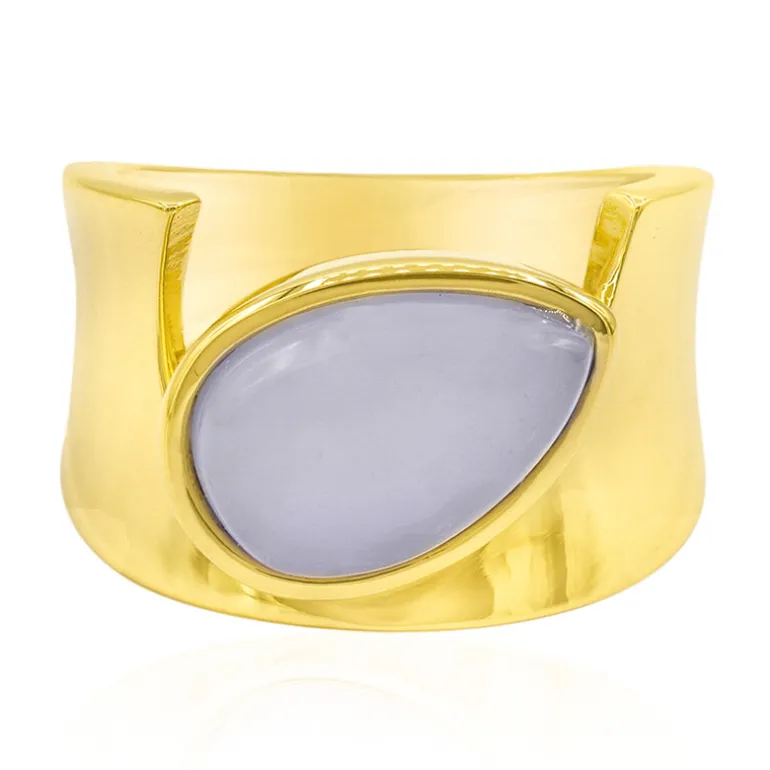 Entdecken Sie die ruhige Schönheit des blauen Madagaskar-Chalcedons in diesem elegant gearbeiteten Ring aus vergoldetem 925er Sterlingsilber aus der MONOSONO COLLECTION. Der tropfenförmige Cabochon mit einem Gewicht von 2,87 Karat schmiegt sich anmutig in eine glänzende Fassung und macht ihn zu einem exquisiten Schmuckstück für jedes Ensemble. Seine sanfte Wölbung und der zarte Blauton strahlen Raffinesse aus. Kombinieren Sie diesen atemberaubenden Ring mit Ihrem Lieblingscocktailkleid für einen Abend oder lassen Sie ihn bei zwanglosen Zusammenkünften zum Gesprächsanlass werden.