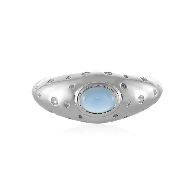 Indischer blauer Chalzedon & weißer Topas Silberring, 0,999 ct