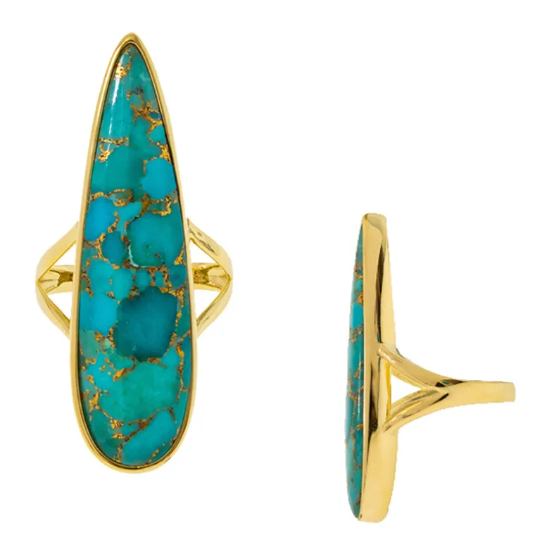 Teardrop USA Kupfer Türkis Vergoldeter Silber Ring, 9,82ct