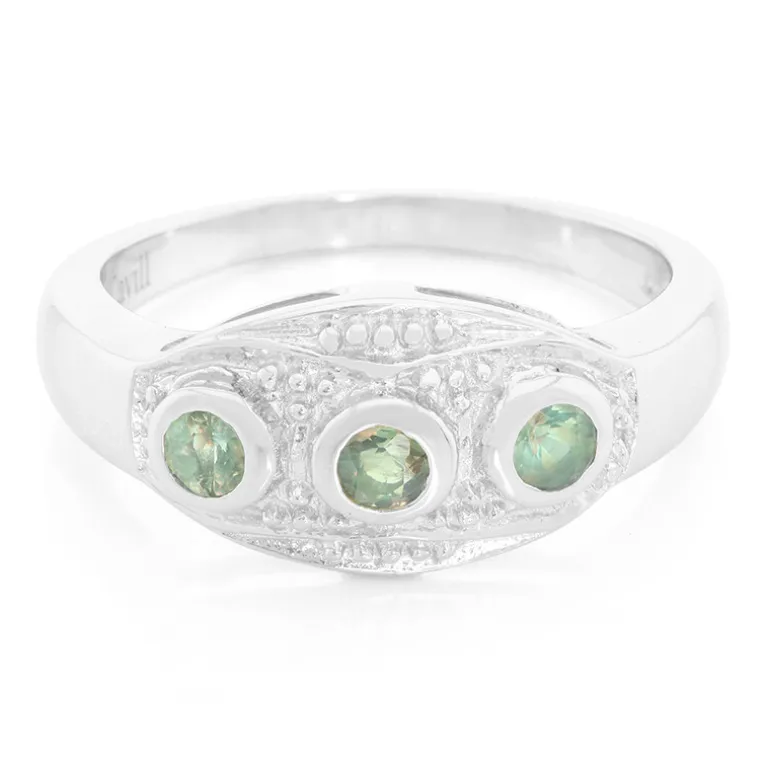 Entdecken Sie Eleganz mit diesem exquisiten brasilianischen Alexandrit-Ring. Er besteht aus drei Alexandriten im Rundschliff mit einem Gesamtgewicht von 0,33 Karat und einer Größe von jeweils ca. 2,7 mm, gefasst in poliertem 925er Sterlingsilber mit Platin-Finish. Dieser Ring eignet sich sowohl für legere als auch für formelle Anlässe und verleiht jedem Outfit einen Hauch von Raffinesse. Er ist die ideale Wahl für besondere Anlässe oder für das tägliche Tragen.