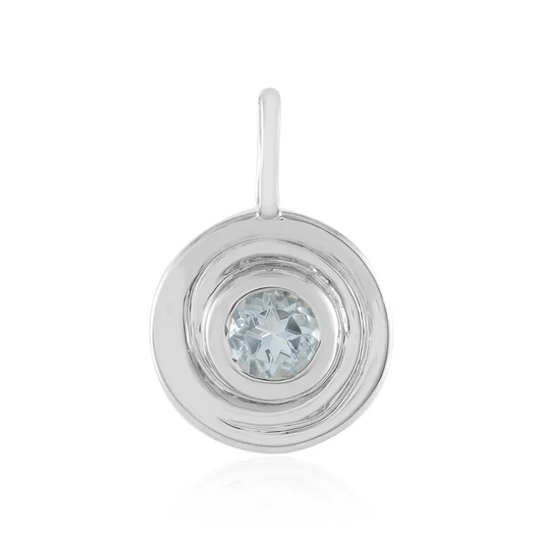 Entdecken Sie die Eleganz dieses brasilianischen Aquamarin-Anhängers mit einem 0,252 Karat großen Edelstein im Rundschliff, gefasst in 925er Sterlingsilber mit Platin-Finish. Der kühle blaue Schimmer des Aquamarins wird durch das glatte Metall wunderbar ergänzt und macht ihn ideal für legere und formelle Anlässe. Kombinieren Sie ihn mit einer klassischen Bluse oder einem Abendkleid für einen Hauch von Eleganz.