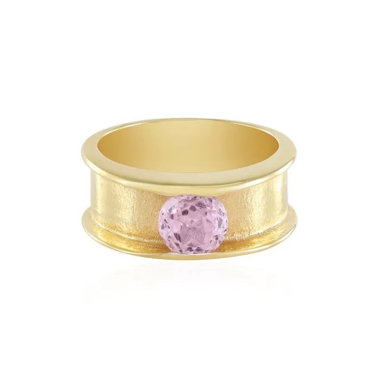 Brasilianischer Kunzit Goldplattierter Silberring, 1,38ct