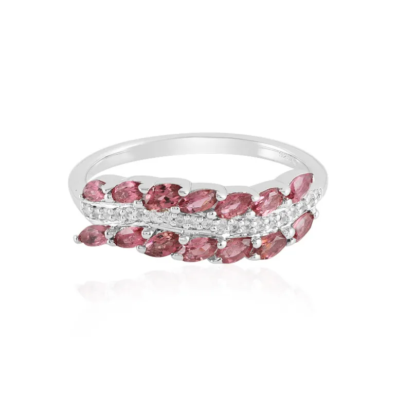 Zelebrieren Sie die Anziehungskraft von Rosa mit diesem atemberaubenden Ring aus 925er Sterlingsilber, der mit einer Kaskade brasilianischer rosa Turmaline im Marquiseschliff von insgesamt 1,008 Karat verziert ist. Durchsetzt mit 21 leuchtenden kambodschanischen Zirkonen, verleiht dieses Schmuckstück Ihrer Hand ein subtiles Glitzern. Das Gesamtgewicht der Edelsteine beläuft sich auf 1,179 ct und verleiht dem Schmuckstück einen Hauch von Eleganz. Er eignet sich sowohl für den täglichen Gebrauch als auch für besondere Anlässe und ist das perfekte Accessoire, um ein schickes Outfit zu unterstreichen oder ein Geschenk für jemanden mit einer Vorliebe für sanfte, romantische Farbtöne.