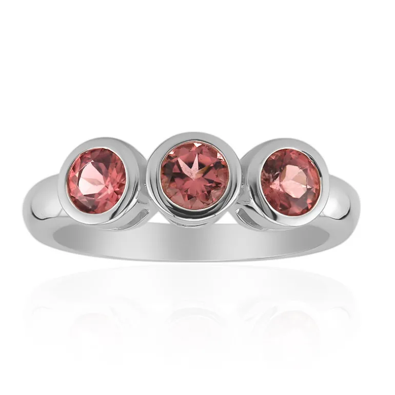 Dieser bezaubernde Ring zeigt drei rosafarbene Turmaline im Rundschliff aus Brasilien mit insgesamt 0,612 Karat, eingebettet in elegantes 925er Sterlingsilber. Das moderne Design mit einem Hauch von Romantik macht ihn vielseitig für den Alltag oder besondere Anlässe tragbar. Kombinieren Sie ihn mit einer schicken Bluse für einen Tag im Büro oder mit einem Cocktailkleid für einen Abend beim Ausgehen. Die zarten Rosatöne verleihen jedem Kleidungsstück einen dezenten Farbakzent.