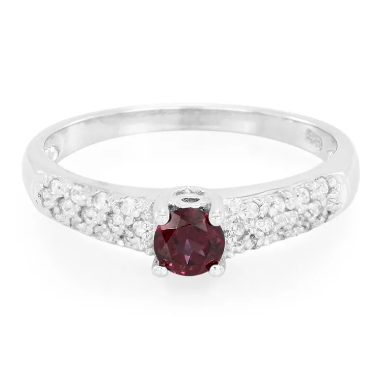 Brasilianischer Rhodolith 0,32ct Silber Ring, 26 Zirkon Akzente