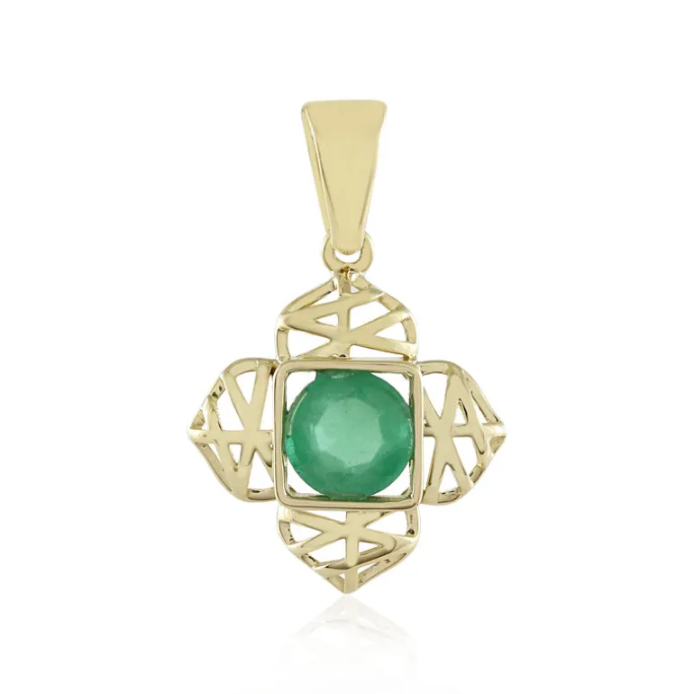 Dieser exquisite brasilianische Smaragd-Anhänger präsentiert einen Edelstein im Rundschliff von 0,45 Karat, der elegant in 375er Gelbgold gefasst ist. Das durchbrochene Design verleiht ihm einen modernen Touch und fängt die Essenz von raffiniertem Luxus ein. Er ist ideal, um jedem Outfit Eleganz zu verleihen und passt sowohl zu legerer als auch zu formeller Kleidung. Dieser Anhänger eignet sich perfekt für besondere Anlässe oder für ein anspruchsvolles Alltagsoutfit und ist eine zeitlose Ergänzung Ihrer Schmucksammlung.