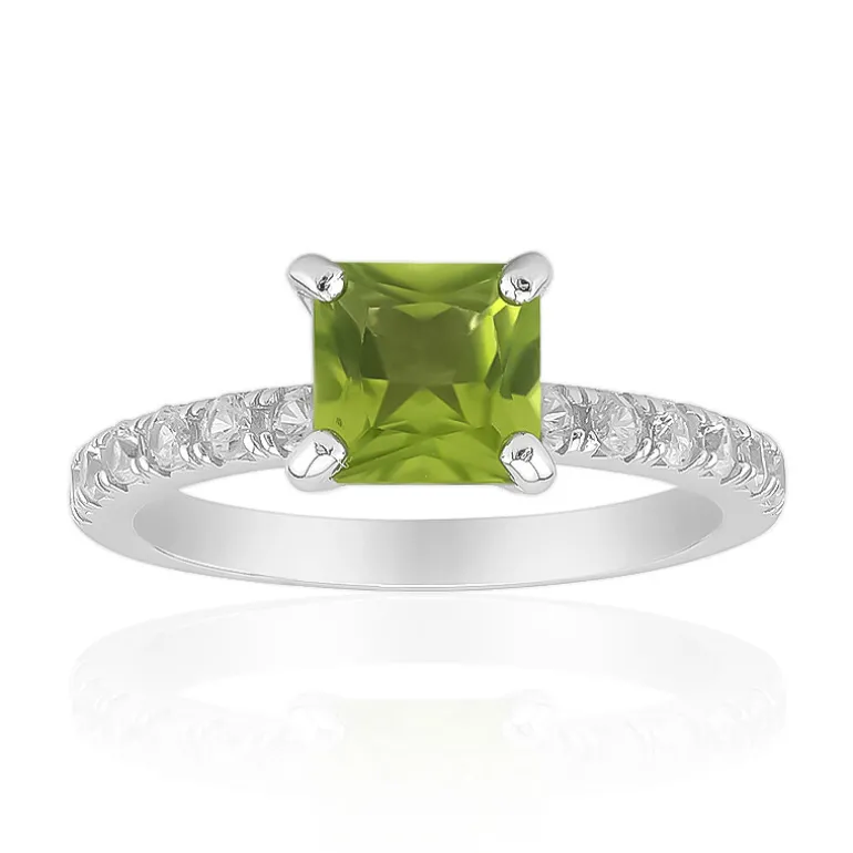 Myanmar Peridot 0,959ct Sterling Silber Ring, Prinzessinnenschliff