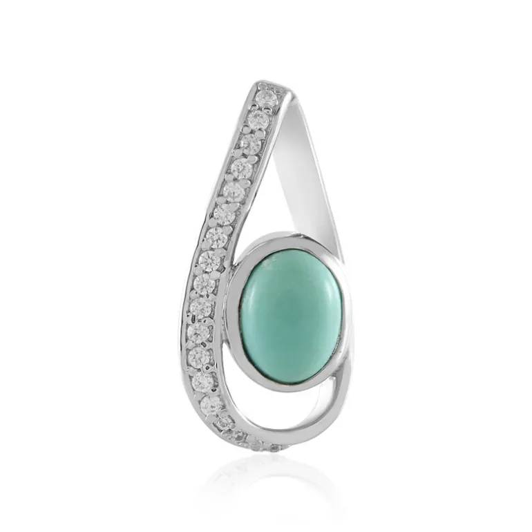 Entdecken Sie die Eleganz dieses Campitos-Türkis-Anhängers. Der ovale Cabochon von 1,035 Karat aus Mexiko ist wunderschön in 925er Sterlingsilber mit Platin-Finish gefasst. Zirkone aus Tansania akzentuieren das Design und verleihen ihm Glanz und Raffinesse. Er ist perfekt, um alltägliche Outfits aufzuwerten oder einem besonderen Anlass einen Hauch von Luxus zu verleihen und ist eine stilvolle Ergänzung für jede Schmucksammlung.