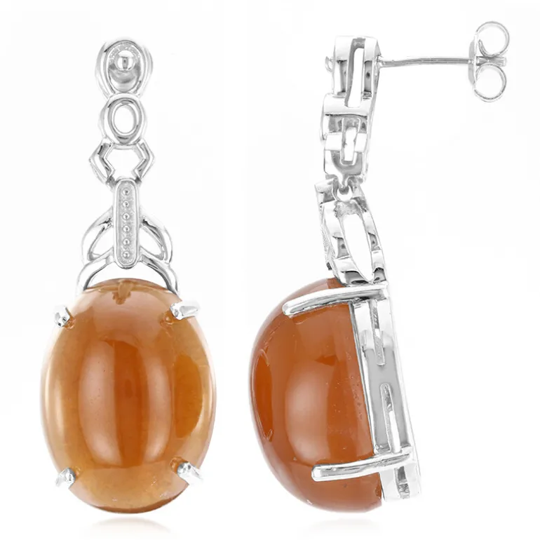 Tauchen Sie ein in die warmen Erdtöne dieser argentinischen Capillitas Aragonit-Ohrringe, die mit Sorgfalt aus 925er Sterlingsilber gefertigt wurden. Die zwei großen ovalen Cabochon-Aragonite mit insgesamt 42,02 Karat baumeln auf einer Länge von 40,5 mm und machen jede Ihrer Bewegungen mit Leichtigkeit mit. Die natürlichen Muster der Steine sorgen dafür, dass jedes Paar so einzigartig ist wie seine Trägerin. Perfekt, um jedem Outfit einen Hauch von naturinspirierter Eleganz zu verleihen, von lässigen Tagen bis zu besonderen Abenden.