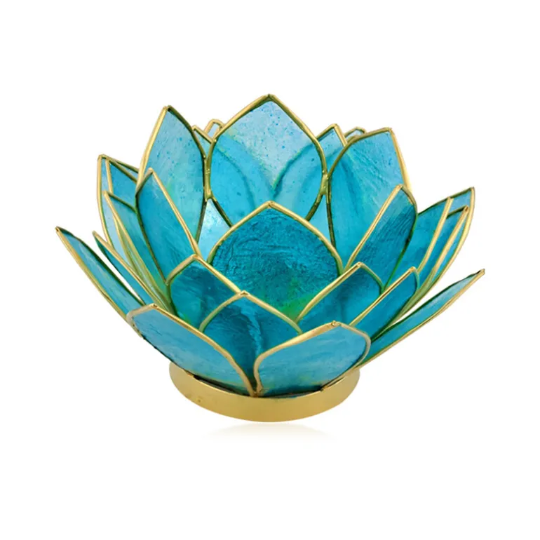 Erhellen Sie Ihren Raum mit dem ruhigen Schein unseres Bali Barong Capiz Shell Teelichthalters. Kunsthandwerklich gefertigt aus zarten Capiz-Muscheln aus Indonesien, ist jedes Stück eine einzigartige Feier der Schönheit der Natur. Die Messingakzente, die etwa 29 g wiegen, verleihen dem 13x13x7 cm großen Halter einen Hauch von Eleganz und ergänzen perfekt seinen aquatischen Türkiston. Setzen Sie mit diesem bezaubernden Stück einen Akzent für ruhige Abende oder einen Blickfang in Ihrem Wohnzimmer. Ideal für Meditationsräume oder als liebevolles Geschenk.