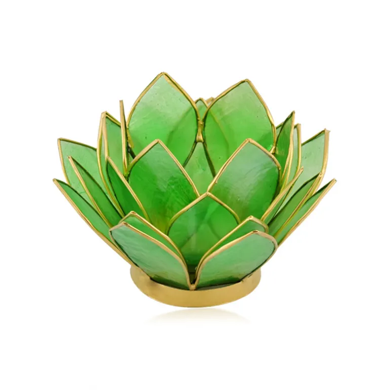 Dieser bezaubernde Teelichthalter verkörpert die Essenz indonesischer Handwerkskunst. Er ist aus ätherischen Capiz-Muscheln gefertigt und strahlt ein beruhigendes grünes Licht aus, das durch die Messingkonturen noch akzentuiert wird. Er ist im klassischen Bali-Barong-Stil gestaltet, wiegt etwa 29 Gramm und hat die Maße 13x13x7 cm, so dass er in jeden Raum passt. Er ist nicht nur ein Kerzenständer, sondern auch ein Gesprächsanreger und eignet sich perfekt, um Ihren Abenden eine ruhige Atmosphäre zu verleihen. Er eignet sich ideal für eine meditative Ecke oder als festlicher Tafelaufsatz und fügt sich harmonisch in erdige und böhmische Dekorationsthemen ein.
