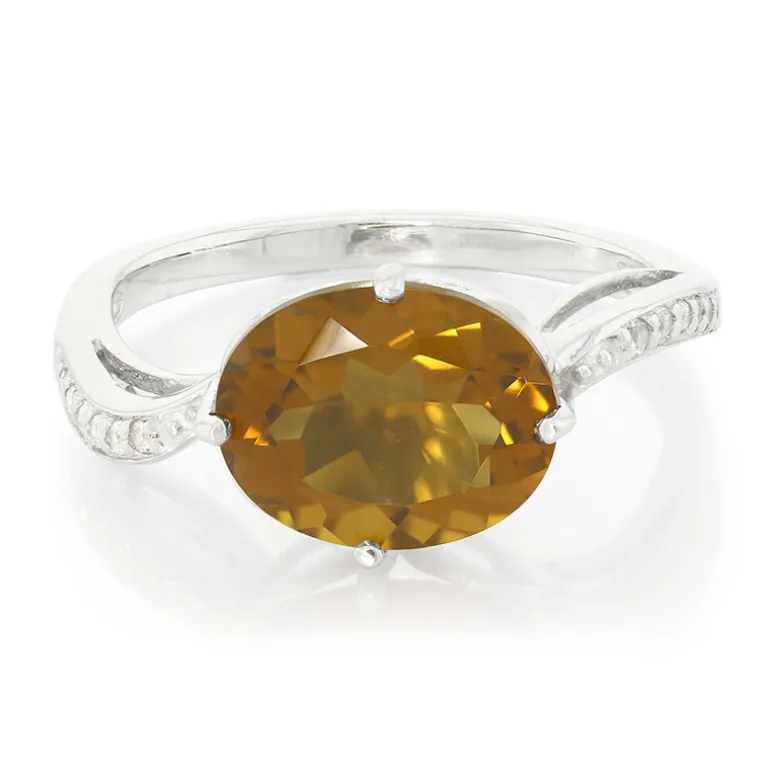 Brasilianischer Cognac-Quarz & Weißer Topas Silberring, 2,1ct