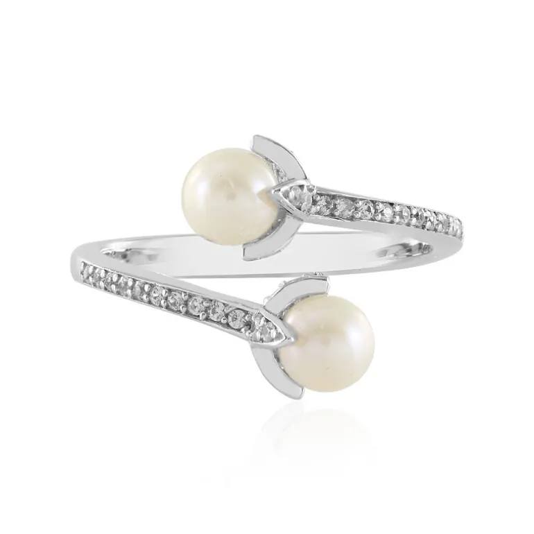 Gönnen Sie sich die zeitlose Eleganz dieses schicken Rings mit zwei schimmernden, cremefarbenen Süßwasserperlen aus China, die durch eine Konstellation funkelnder Zirkone aus Kambodscha perfekt ergänzt werden. Der offene Ring aus 925er Sterlingsilber mit einem Gesamtgewicht von 0,27 Karat schmiegt sich anmutig an den Finger und ist eine vielseitige Ergänzung für den Alltag und besondere Anlässe. Kombinieren Sie dieses Schmuckstück mit pastellfarbenen oder erdfarbenen Outfits für einen unaufdringlichen, raffinierten Look.