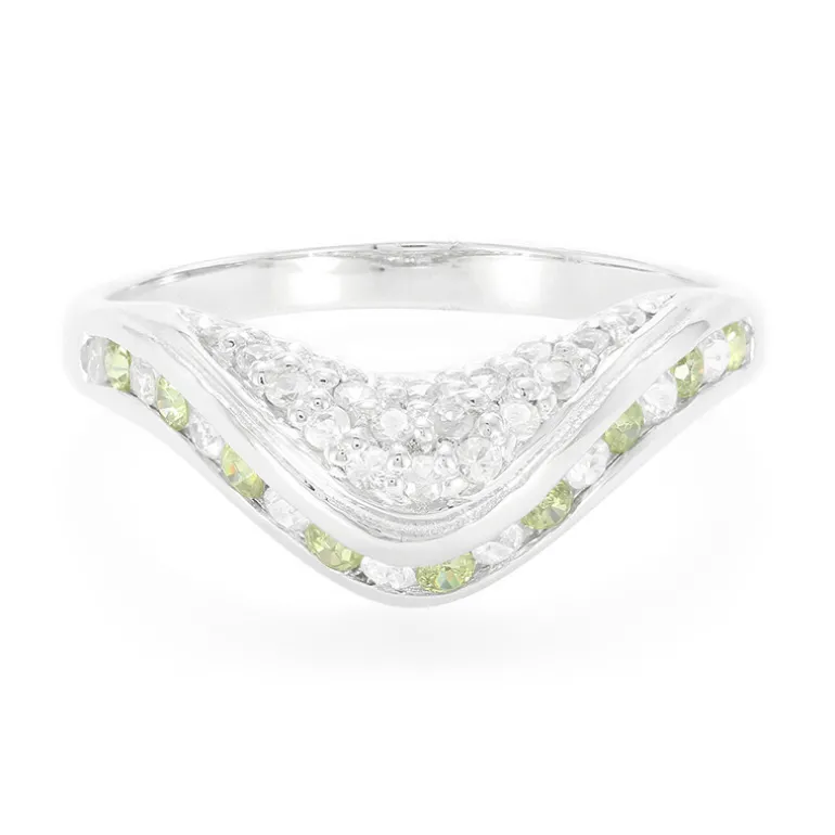 Entdecken Sie die Faszination dieses Rings aus Sterlingsilber, in dem Demantoide und Saphire aus Madagaskar in harmonischer Pracht aufeinandertreffen. Die 0,23 Karat sattgrünen Demantoide werden durch 0,219 Karat reinweiße Saphire ergänzt, die alle sorgfältig geschliffen wurden, um maximale Brillanz zu zeigen. Mit weiteren 0,259 ct Saphiren, die das Design akzentuieren, sorgt das Gesamtgewicht der Edelsteine von 0,708 ct für ein funkelndes Statement. Dieser Ring schmiegt sich elegant um den Finger und bietet einen raffinierten Look, der sowohl für formelle Anlässe als auch für den Alltag geeignet ist. Kombinieren Sie ihn mit einem klassischen Cocktailkleid oder verleihen Sie Ihrem lässig-schicken Ensemble einen Hauch von Luxus. Die Chevron-Form ist sowohl modern als auch zeitlos und sorgt dafür, dass dieses Schmuckstück über Jahre hinweg in Ihrer Sammlung bleibt.