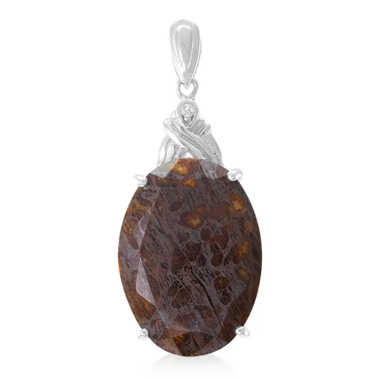 Schmücken Sie Ihre Garderobe mit einem Stück prähistorischer Schönheit: dem USA Dinosaurier Quarz Silberanhänger. Dieser Anhänger aus 925er Sterlingsilber zieht mit seinem großen Dinosaurierquarz im Ovalschliff (17,95 Karat) alle Blicke auf sich und ist sowohl ein Gesprächsanlass als auch ein Kunstwerk. Ein subtiler brasilianischer Weißtopas verleiht ihm einen Hauch von Raffinesse. Kombinieren Sie diesen einzigartigen Schatz mit Erdtönen für einen natürlichen Look oder heben Sie ihn mit einem kleinen schwarzen Kleid für einen abendlichen Anlass hervor.