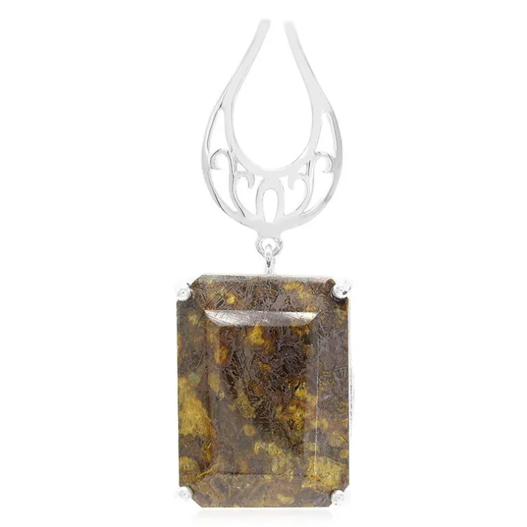Entdecken Sie die prähistorische Anziehungskraft dieses faszinierenden Anhängers aus Dinosaurier-Quarz (18,61ct). Das aus den USA stammende Mineral mit seinem 22×16 mm großen, achteckigen Schliff versprüht antiken Charme. Der in edlem 925er Sterlingsilber gehaltene Anhänger misst 45×16 mm und wiegt ca. 3,05 g. Er eignet sich perfekt, um Ihrem Ensemble einen Hauch von Geschichte zu verleihen, und lässt sich elegant mit erdfarbenen Outfits kombinieren – für einen raffinierten Look bei Dinnerpartys oder Museumsbesuchen.