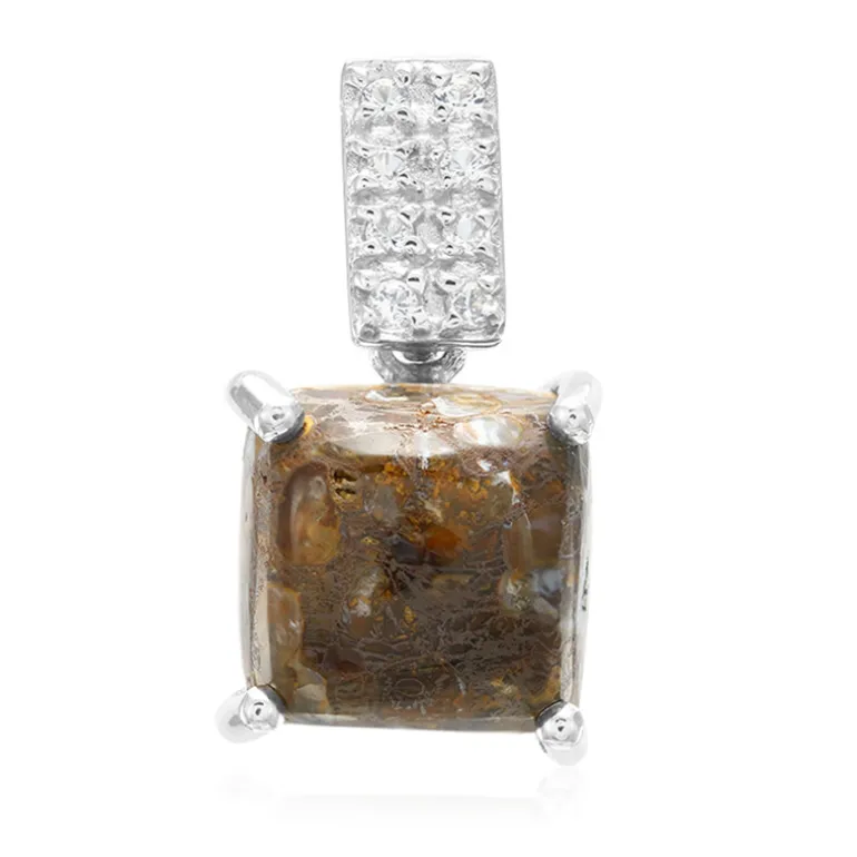 Entdecken Sie die prähistorische Anziehungskraft dieses Dinosaurier-Quarz-Anhängers, der mit einem fesselnden Edelstein im Kissenschliff von 5,64 Karat und natürlichen Einschlüssen an eine vergangene Ära erinnert. Die funkelnden Zirkone in 925er Sterlingsilber sorgen für Gesprächsstoff und sind ein zeitloses Schmuckstück. Es eignet sich perfekt, um jedem Ensemble einen Hauch von Faszination zu verleihen, und ist für Sammler und Modefans gleichermaßen geeignet.