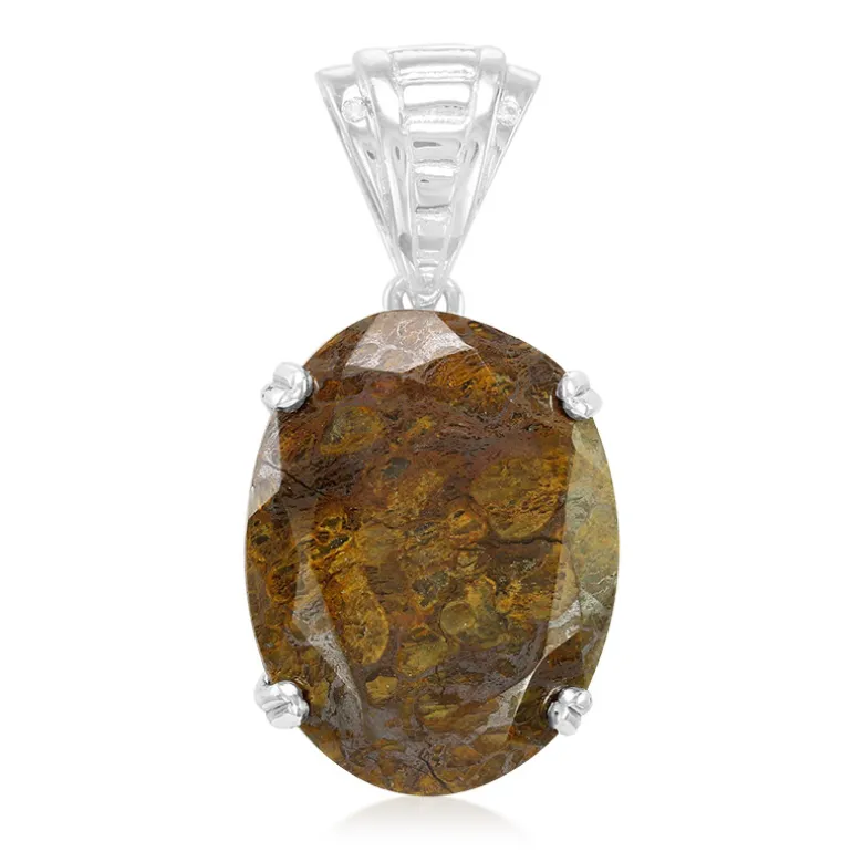 Tauchen Sie ein in den prähistorischen Charme dieses atemberaubenden Anhängers mit einem ovalen Dinosaurier-Quarz von 9,8 Karat aus den USA, akzentuiert mit zwei funkelnden weißen Topasen aus Brasilien. Dieser Anhänger aus hochwertigem 925er Sterling Silber ist ein Zeugnis der Geschichte und der Schönheit. Die erdigen Farbtöne des Quarzes machen ihn zu einem vielseitigen Schmuckstück, das sowohl im Alltag als auch zu besonderen Anlässen getragen werden kann. Kombinieren Sie ihn mit warmen oder neutralen Farben, um seine antike Anziehungskraft zur Geltung zu bringen.