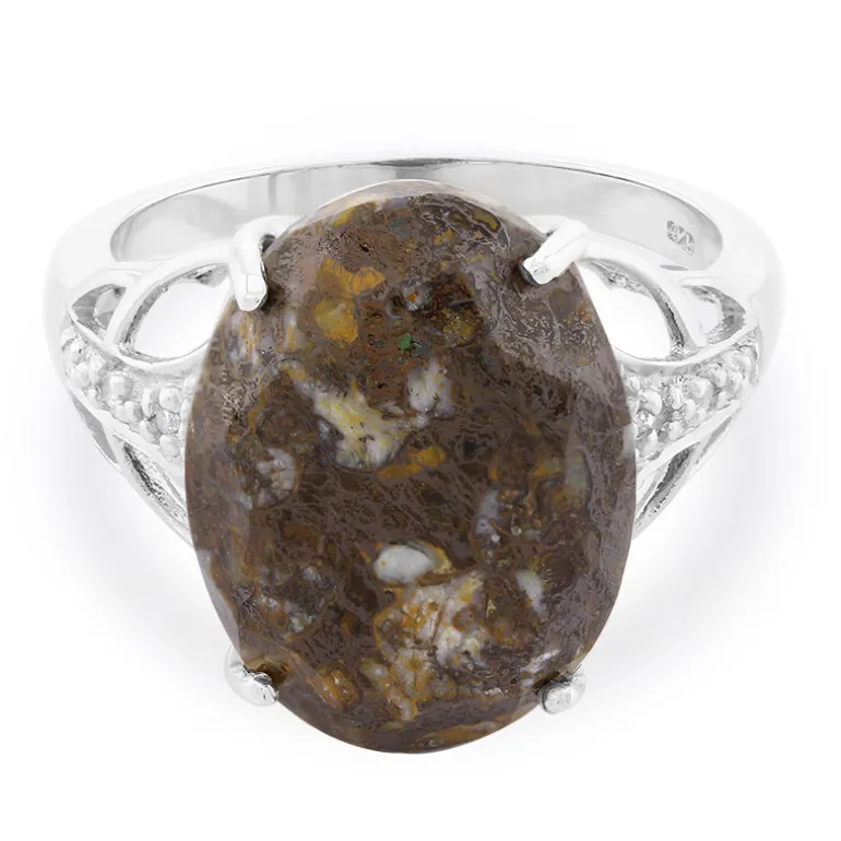 Tauchen Sie ein in antiken Charme mit diesem fesselnden prähistorischen Quarz & Weiß Topas Sterling Silber Ring. Mit einem 8,24 Karat schweren Dinosaurier-Quarz im Ovalschliff aus den USA ist dieser Ring ein echter Gesprächsstarter. Eingerahmt von sechs funkelnden weißen Topasen aus Brasilien, die zusammen 0,033 Karat ausmachen, schimmert der Ring vor Geschichte. Auf einem 925er-Sterlingsilberband mit einem Gewicht von etwa 2,54 Gramm vereint er moderne Handwerkskunst mit einer vergangenen Ära. Dieser Ring ist ideal für Liebhaber einzigartiger und geschichtsträchtiger Schmuckstücke und passt sowohl zu legerer als auch zu raffinierter Kleidung, was ihn zu einer vielseitigen Ergänzung jeder Sammlung macht.