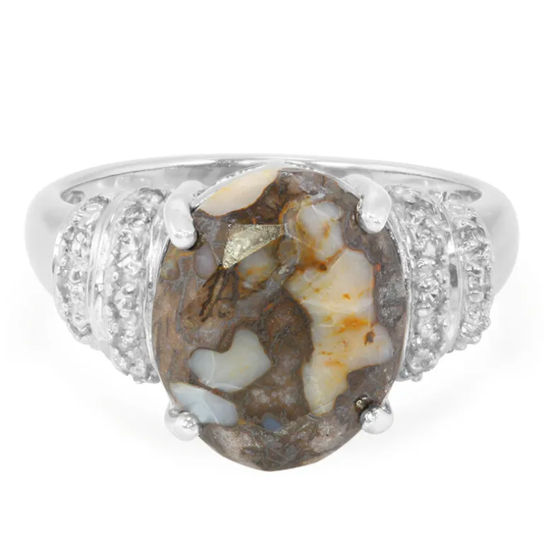 Lassen Sie sich mit diesem faszinierenden Ring aus prähistorischem Quarz und Topas vom Charme der Antike verzaubern. Ein atemberaubender Dinosaurier-Quarz von 3,48 Karat aus den USA steht im Mittelpunkt. Seine ovale Form und die unverwechselbaren Muster erinnern an eine vergangene Ära. Umgeben von 24 glitzernden weißen Topasen aus Brasilien mit einem Gesamtgewicht von 0,217 Karat strahlt dieses Schmuckstück einen schillernden Kontrast aus. Das Band aus 925er Sterlingsilber mit einem Gewicht von etwa 2,74 Gramm verleiht diesem einzigartigen Schmuckstück einen Hauch von Raffinesse. Dieser Ring ist für Sammler und Stilliebhaber gleichermaßen geeignet und verspricht, bei jeder Veranstaltung für Gesprächsstoff zu sorgen.