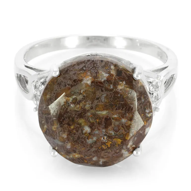 USA Dinosaurier Quarz & Zirkon Silber Ring, 8,15ct