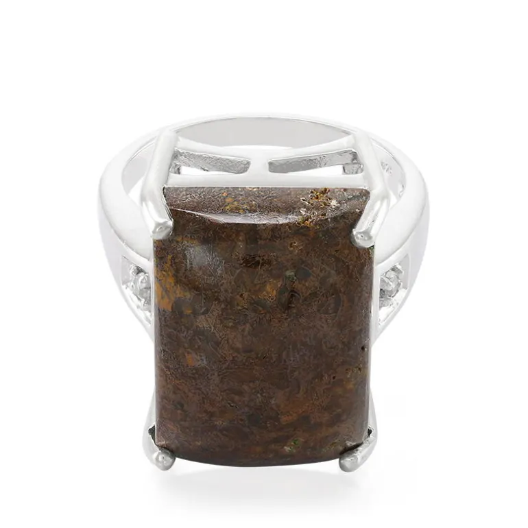 Tauchen Sie ein in prähistorische Eleganz mit diesem atemberaubenden USA Dinosaurier Quarz Ring, gepaart mit funkelnden brasilianischen White Topaz Akzenten von insgesamt 0,05ct. Der Ring aus 925er Sterling Silber ist mit einem bemerkenswerten Quarz im Baguette-Cabochon-Schliff von 12,58 Karat besetzt, der erdige Töne und natürliche Pracht ausstrahlt. Mit einer Größe von 30 x 21 mm ist dieses Schmuckstück nicht nur ein Gesprächsanlass, sondern auch eine zeitlose Ergänzung Ihrer Sammlung. Perfekt, um Ihrer Abendgarderobe einen Hauch von Geschichte zu verleihen oder als unverwechselbares Statement für Ihre Alltagsgarderobe.