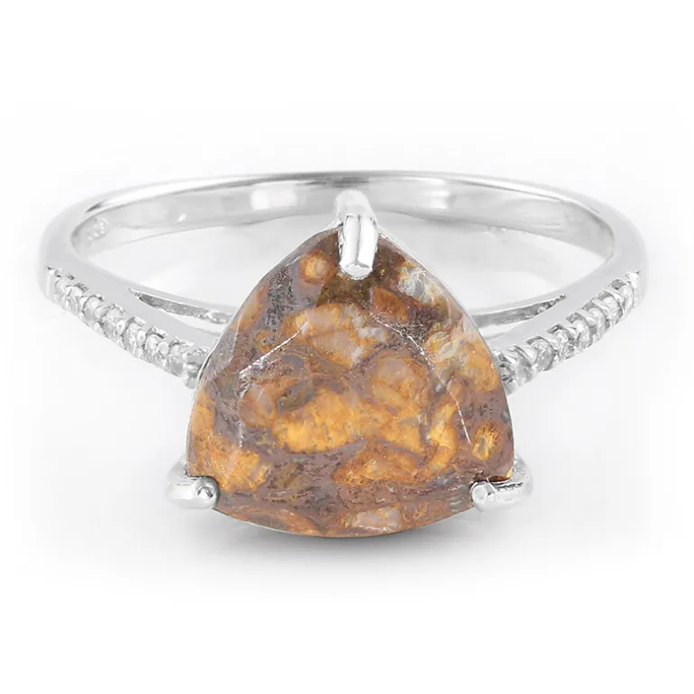 Entdecken Sie die antike Anziehungskraft dieses auffälligen Rings mit einem robusten Dinosaurier-Quarz von 2,63 Karat aus den USA, der in einem fesselnden Trilliant-Schliff geformt ist. Der ca. 10 mm große Mittelstein ist in 925er Sterlingsilber eingefasst und wird durch 14 funkelnde kambodschanische Zirkon-Akzente von insgesamt 0,118ct ergänzt. Dieser Ring vereint ein Gesamtgewicht von 2,748ct in einem Design von 25,5×19,5 mm. Er ist ideal, um jedem Ensemble einen Hauch von historischem Charme zu verleihen, und eignet sich perfekt für verschiedene Anlässe, von zwanglosen Zusammenkünften bis hin zu Abendveranstaltungen.