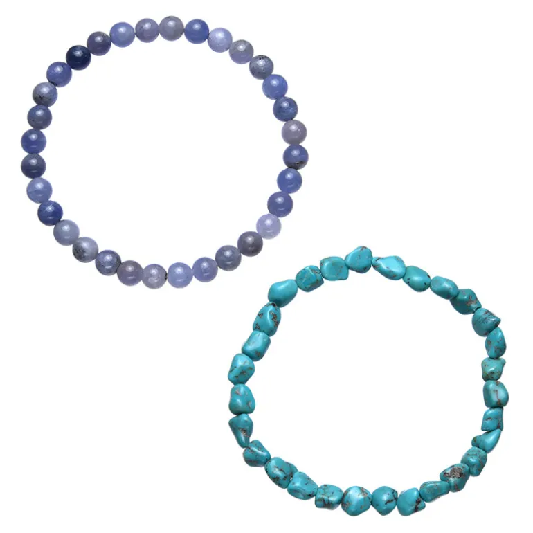 Unterstreichen Sie Ihren Stil mit diesem atemberaubenden Armbandset mit 50 Karat runden tansanischen Tansanitperlen und 35 Karat ausgefallenen chinesischen Türkisperlen. Die Armbänder sind ca. 19 cm lang und passen wunderbar zu einem schicken Bohème-Look. Die Armbänder sind ein Muss für Edelsteinliebhaberinnen und eignen sich perfekt für lässige Ausflüge oder als Farbakzent für jedes Ensemble.