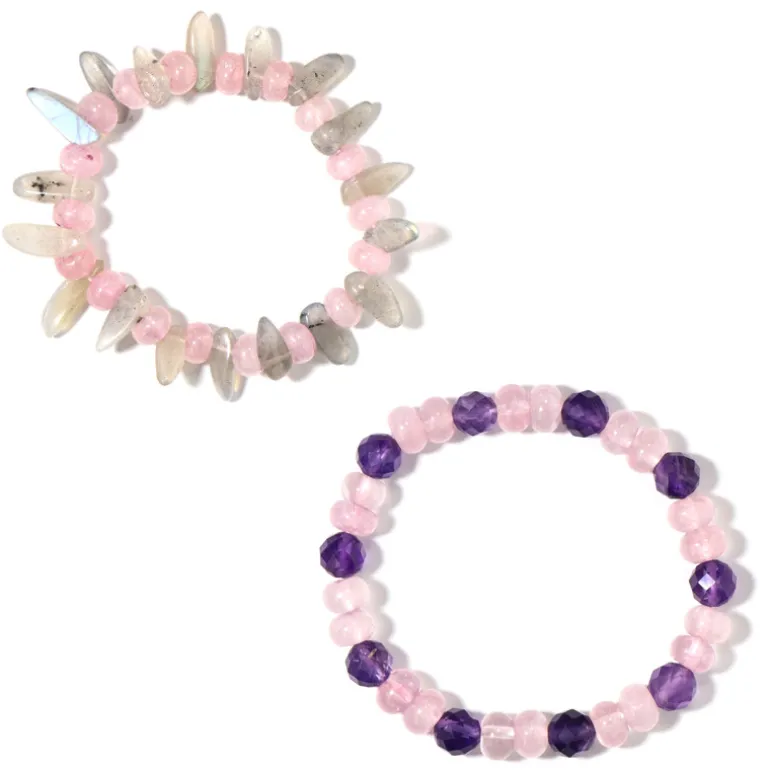 Dieses exquisite Armband kombiniert die beruhigenden Töne des brasilianischen Rosenquarzes, des lebhaften sambischen Amethysts und des fesselnden madagassischen Labradorits. Mit einem Gesamtkaratgewicht von 167,671 bietet dieses Stück eine einzigartige Mischung aus Farben und Energien. Perfekt, um jedem Outfit einen Hauch von Eleganz zu verleihen, ob leger oder formell. Ideal für alle, die die natürliche Schönheit von Edelsteinen schätzen.