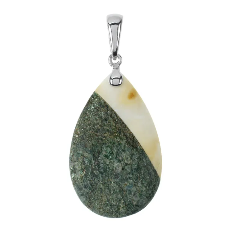 Baltischer Bernstein & Fuchsit Mosaik Silber-Anhänger