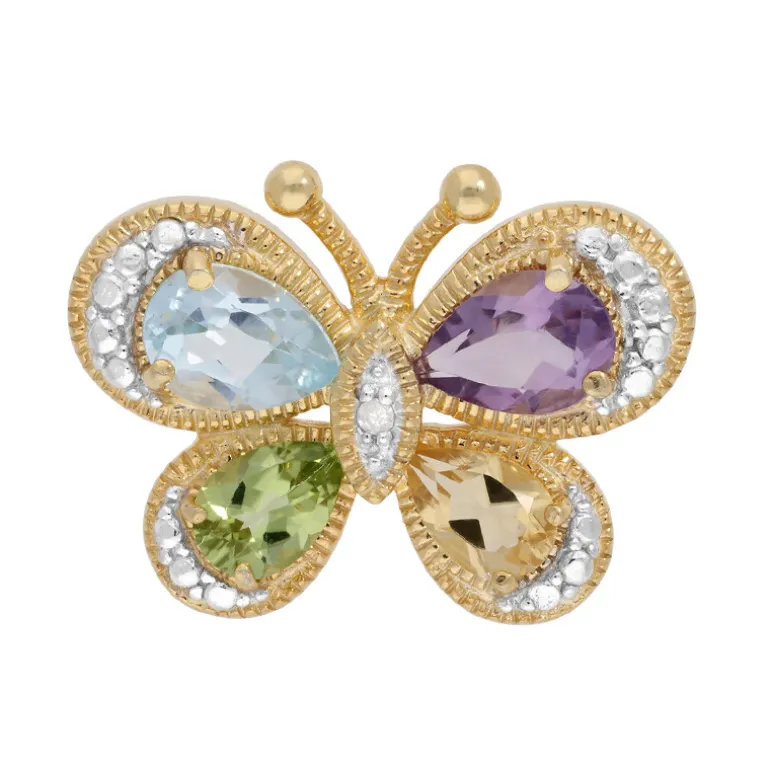 Schmetterlings-Edelstein-Cluster Vergoldeter Anhänger, 1,93 ct